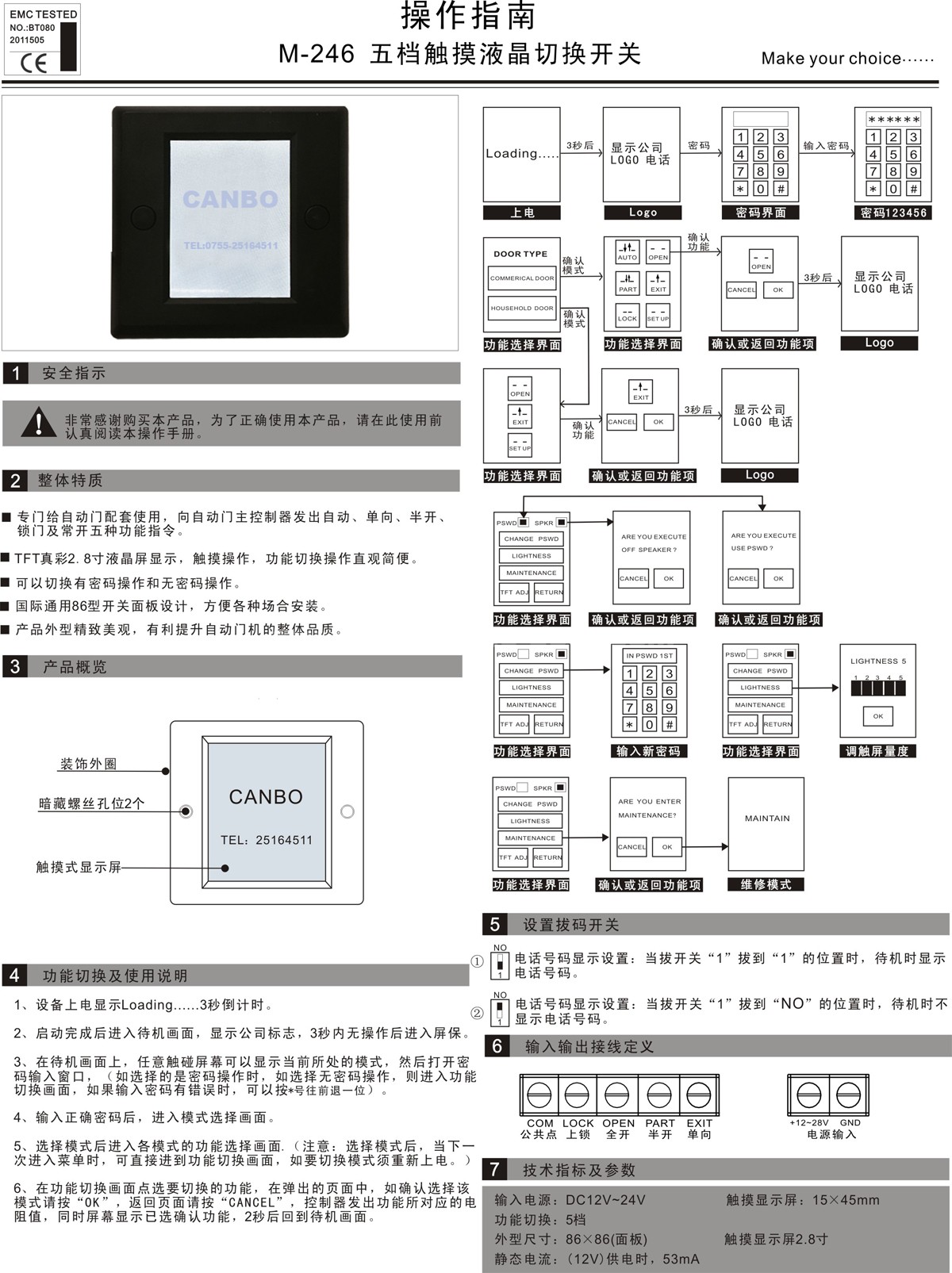卡博CNB-246 五档触摸屏切换开关(图1)