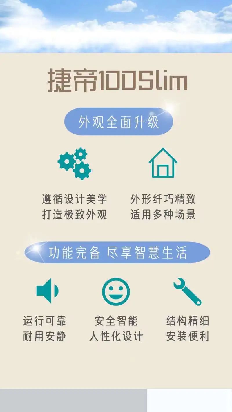 点击上方观看视频 PART 1 PART 1 开箱视频 点击视频了解捷帝100Slim产品开箱 PART 2 PART 2 产品特点 PART 3 PART 3 适用场所 PART 4 PART 4 功能说明 PART 5 PART 5 性能参数 智慧生活 松下与您 共同向往